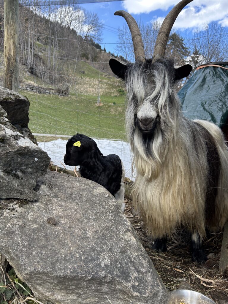 Die Geissen gehören zum Wallis wie die Berge und Gletscher. Die Walliser-Kupferhalsziegen sind stolze, schlaue und anmutige Tiere. Gutmütig, die jedoch ihren Kopf (Charakter) gut durchsetzen können, manchmal störrisch aber meist kooperativ. Trotz ihrer Grösse und ihrem Gewicht können sie sehr verschmust und anhänglich sein. Also einfach liebenswerte Begleiter.